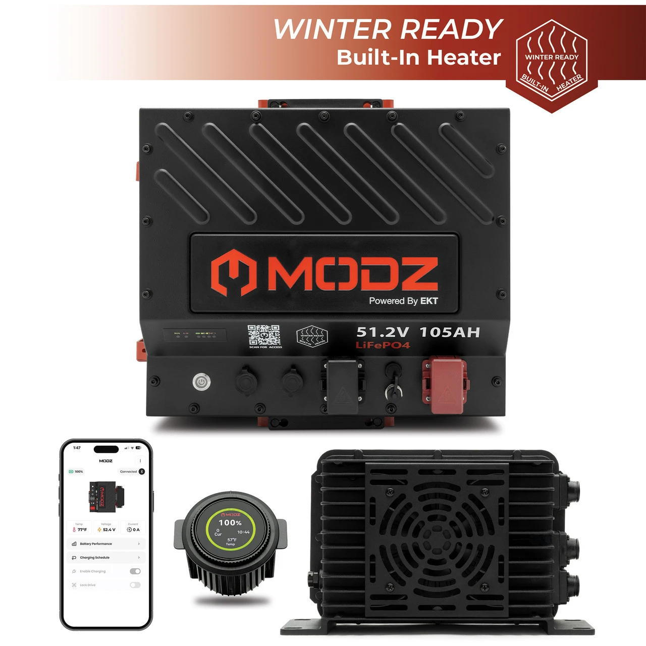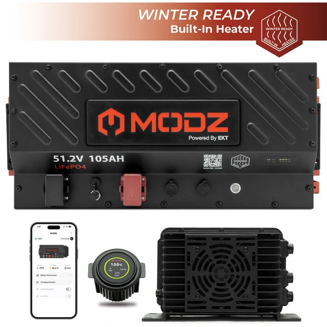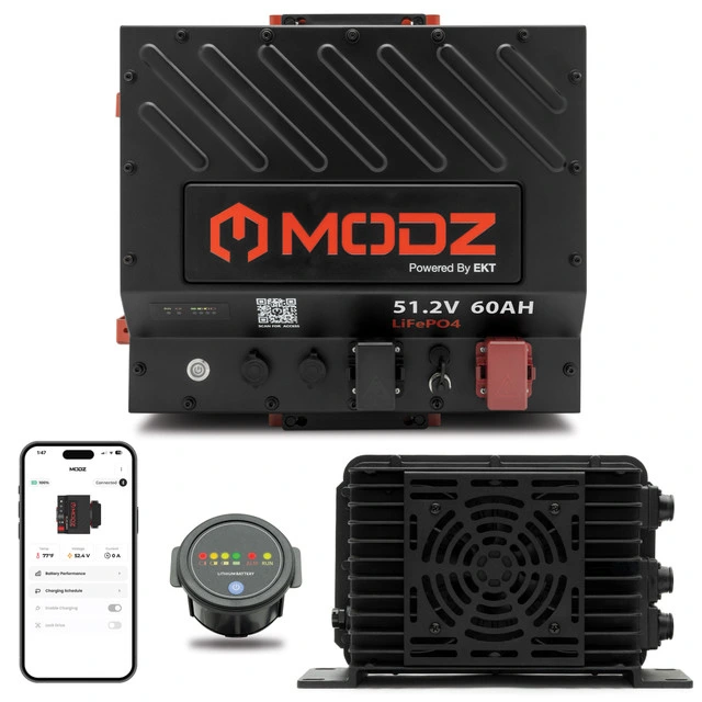 The MODZ® 51.2V 105Ah Slim Lithium Battery Bundle delivers advanced power, faster charging, and premium features for high-performance golf carts. Engineered for reliability and ease of installation, this all-in-one solution combines cutting-edge technology with rugged durability to elevate both performance and user experience.